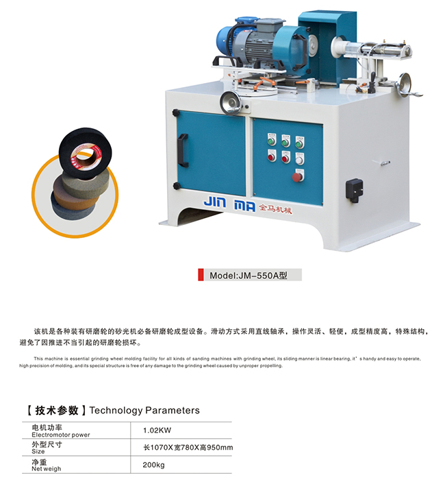 首页 > 产品展示 > 木门线条、木线条、窗饰线、百叶窗片砂光 > JM-500A研磨轮成型机